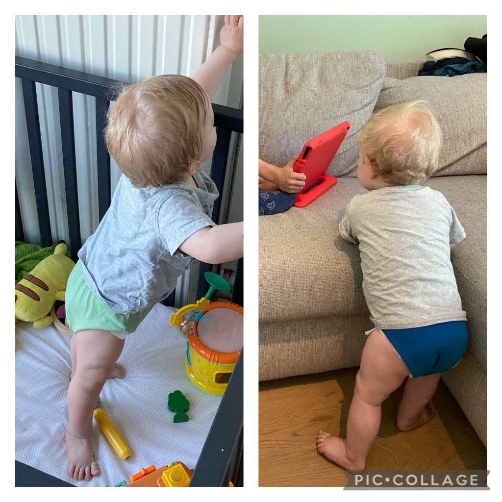Onze Babybroer checkt netjes een aantal mijlpalen af staat nu vlotjes recht, zo al eens met één handje loslatend enzo, en duidt onze katten met een herkenbaar woordje aan (laat ons zeggen dat ik op basis van zijn gebrabbel weet of het Scotty of Janie is die binnenkwam. Dus ergens toch duidelijk).