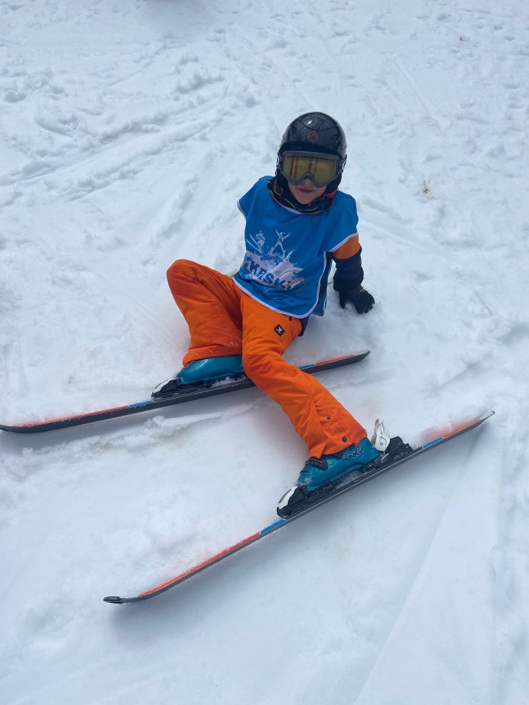 Na die eerste les had hij nog enigszins dubbele gevoelens bij hoe leuk skiën nu eigenlijk was. Maar ’s middags was er pasta (véél pasta) en later gingen we in de jacuzzi en sleeën en ’s avonds werd er door iedereen van het hotel gezongen en kreeg hij een kaarsje op zijn ijsje.