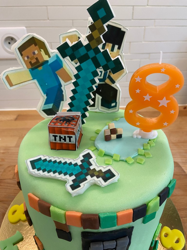 Dus toen de jongens de volgende dag wakker werden, was het al een beetje feest. Want ik had ook een kroon bij, en een badge met ‘It’s my birthday’. Zo kon iedereen zien dat die knappe zoon van mij vandaag jarig was. Acht jaar!